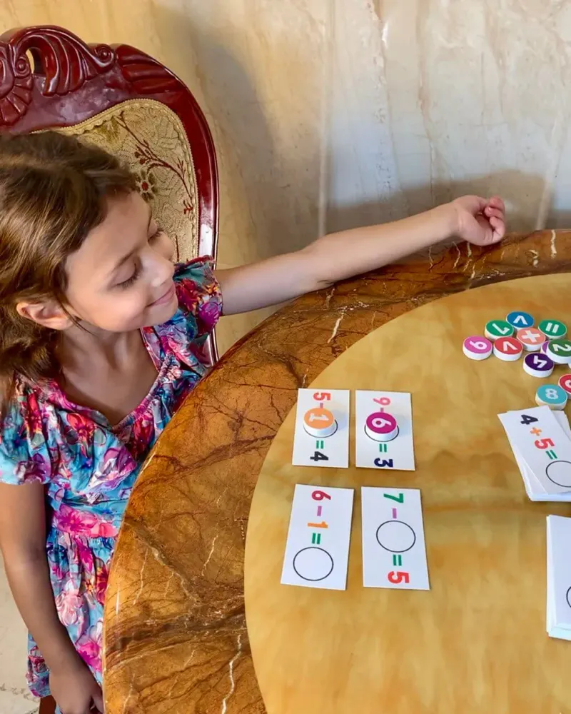 🔢 لعبتان في 1 (البطاقات الحسابية + العد البصري)
